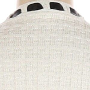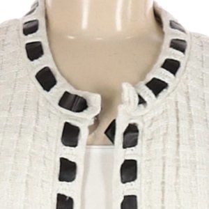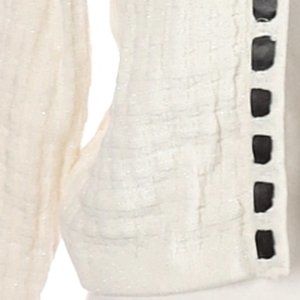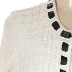 🦓 Stunning White & Silver Metallic Cardigan with Black Satin Ribbon Trim - M