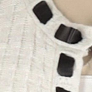 🦓 Stunning Luxurious White & Silver Metallic Cardigan with Black Satin Ribbon Trim