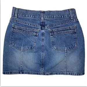 Gap Blue Denim Jean A-Line, Back Pockets, Zipper, Mini. Size 4, 100% cotton and Made in USA! All our pre-owned items are inspected, washed, photographed, and stored in plastic storage containers. From a smoke free, odor free home.