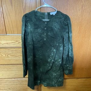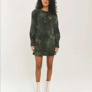 NWOT Something Navy Edie Long Sleeve Mini Dress Army Green Tie Dye Size S Small
