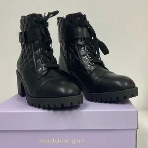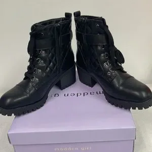 Brand new with box Women’s Madden Girl Black Harlow Combat Boots. Size is 9.5.