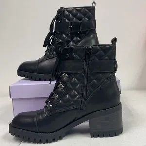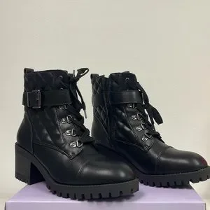 Brand new Woman’s Madden Girl Black Harlow Combat Boots. Size is 9.5. Boots are 8 inches tall. Heal of the boot is approx 2.5 inches. Man made upper PU/fabric lining. Man made outsole. Comes with box. The top of the box is tapped at the corners. Make an offer. Buy with confidence knowing that I am a POSHMARK Ambassador and top rated seller. Please visit my closet for lots of other items such as dresses, tops, shirts, coats, jewelry and handbags.