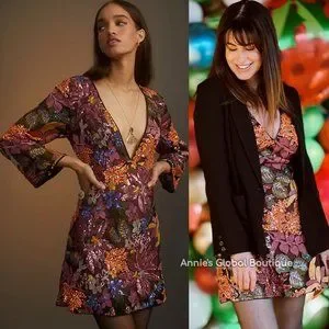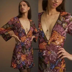 Brand new with tags NWT ANTHROPOLOGIE Sequined Embroidered Cut-Out Mini Dress. This dazzling sequined number is destined to steal dance floor glances.