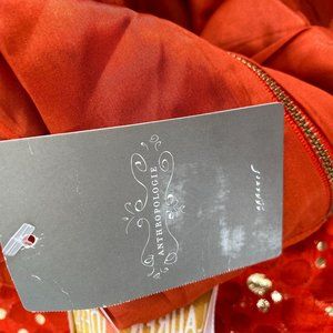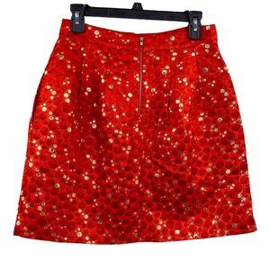 Lauren Moffatt Anthro crimson bubbles mini skirt size 4 red metallic gold pocket