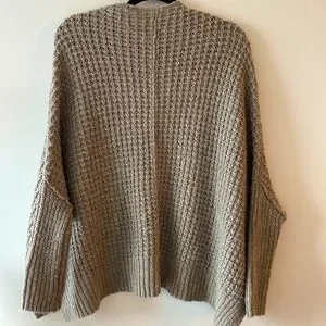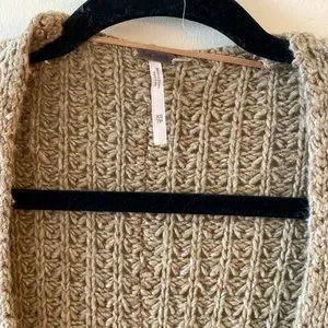This is soo cute but I barely wear it, it’s sitting around too long and deserves a better home! Knit style, kind of like a sweater kimono when it’s open!! Snap closure on the front!