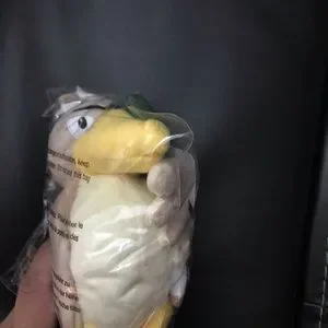 The Farfetch'd Sitting Cuties Plush is weighted with microbeads, so it sits up when you put it on a flat surface. This palm-sized plush is a fun, charming way to show off a favorite Normal- and Flying-type Pokémon originally discovered in Kanto!