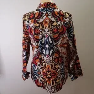 Chico's size 1 brightly colored button down shirt. F39