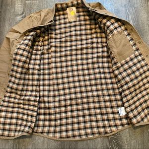 Carhartt men’s weathered canvas flannel lined shirt jacket.