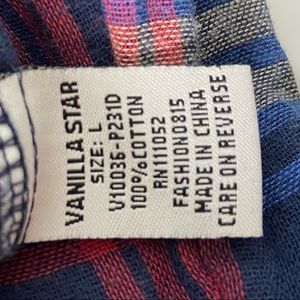 Vanilla Star cotton plaid shirt size Large. Cool metal buttons and has slightly western vibe to the detail. Colors: blue, gray, and red plaid. In great condition. See photos. FAST SHIPPING!