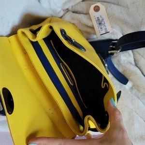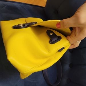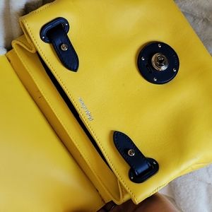 Gorgeous yellow and navy leather Ricky Bag by Ralph Lauren - so unique, never worn but has some scuffs as shown since it was a store display. key is missing, but bag still opens :)