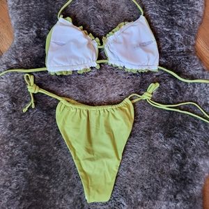 Olive Green Ruched Top and Brazilian Bottom Bikini Set