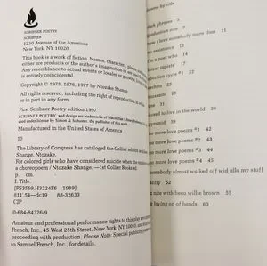 For Colored Girls Who Have Considered Suicide When The Rainbow is Enuf Paper back Book Ntozake Shange. Award-winning choreopoem / theater piece. Adapted into a Major Motion Picture by Tyler Perry