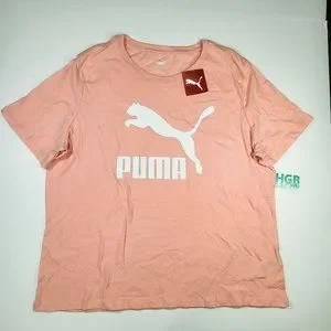 Puma Classic Logo T-Shirt Women's Short Sleeve Running Plus Size Peach TL59296