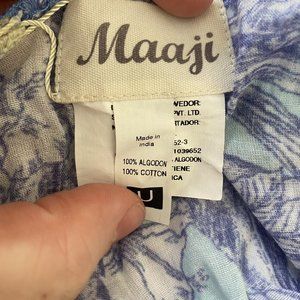 Women’s oversized scarf from Maaji, a Revolve brand. Gorgeous colors and mixed print with blue contrast seams, large enough to use as a shawl or wrap. 100% cotton, very soft. VGUC light wear, no holes or stains.