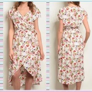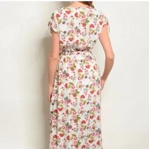 V-NECK HI-LOW IVORY FLORAL SHIFT DRESS