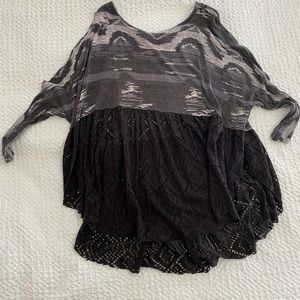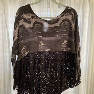 Free People Black Boho Aztec Eyelet Mid Sleeve Top Size XS