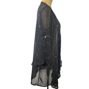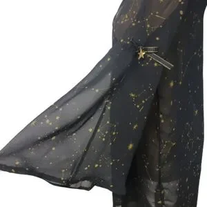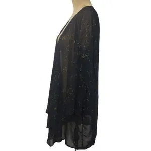 Very adorable sheer black gold matte constellation/astrology star print open front kimono