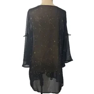 SOLD Black Sheer Gold Astrology Constellation Print Bell Sleeved Kimono Sz M