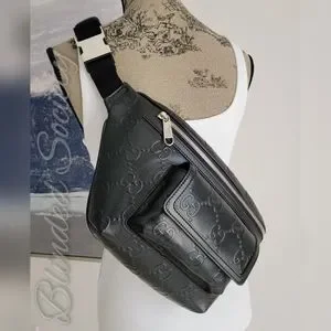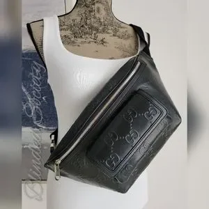 Gucci GG Supreme Embossed Crossbody Belt Bag Sling Black Leather