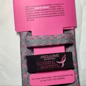 SUSAN G. KOMEN For The Cure Neck Tie, 59”, Grey, Pink Ribbons GENUINE