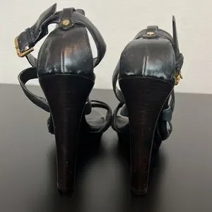Ralph Lauren Purple Label black leather heels sandals size 7.5