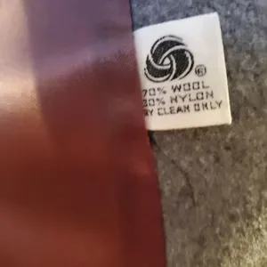 Couldn't find Brand label but 70 percent wool, 30 percent nylon.