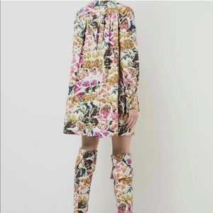 Adam Lippes floral print silk faille tiered mini dress. With pockets!