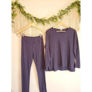 Aerie Navy Waffle Knit 2 Piece Loungewear Set, Size Small