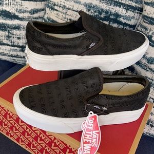 New in the box authentic women’s Vans Classic Slip-On Platforms Deboss Otw Black/Black platforms