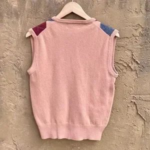 SOLD Vintage Checkmate V Neck Sleeveless Argyle Preppy Sweater Sz M