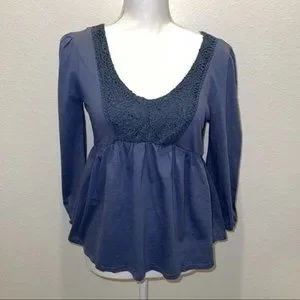 NWT Derek Heart Womens Crochet Babydoll Top Vintage Indigo Size Large $30 B83