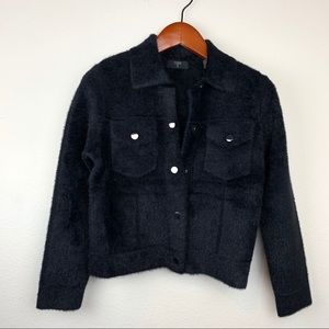 Tahari Wool Fuzzy Teddy Soft Moto Jacket Blazer Soft