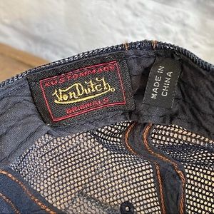VON DUTCH Kustommade Originals NWOT Blue Denim Jean Distressed Trucker Snapback Hat Cap