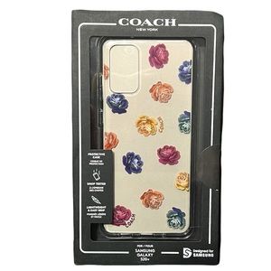 Brand new in box. Authentic COACH Samsung Galaxy S20 PLUS Hard Case. The Printed Slim Wrap Case has effortlessly captured that NY style and craftsmanship expected from Coach. Accented with pink/peach floral glitter accents and signature Coach graphics for a trend-worthy touch to your Galaxy. An ultra-slim profile so it can easily slip into your purse or pocket.