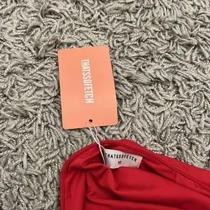 THATSSOFETCH Red One Shoulder Rouched Dress