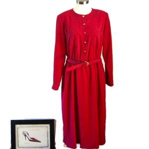 Beautiful vintage secretary dress with matching belt, long sleeves and elastic waist.