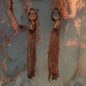 Long gold chain Earings.