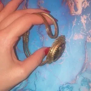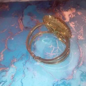 This vintage bracelet is very unique! The pendant attached to it is hand embroidered purple flowers. Ir has a claw clasp.