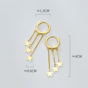 NEW 925 Sterling Silver Star Chain Drop Huggie Hoop Earrings