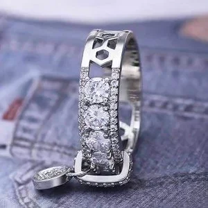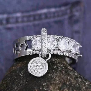 *NEW 925 Silver Round Diamond Drop Band Ring