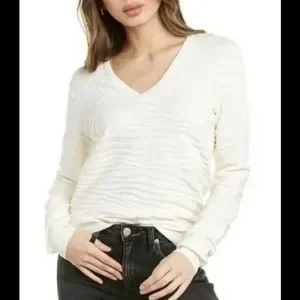 New Theory zebra plush sweater. Ivory with textured look. This is a bit oversized. P: Armpit to armpit 17.25”. Back of neck to bottom 23.5”. S: Armpit to armpit 18.25”. Bank of neck to bottom 23.5”. Material has stretch. Viscose, wool, nylon & spandex blend. Will upload more pics shortly.