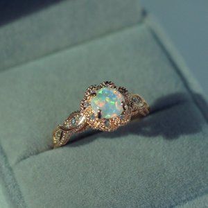 *NEW Rose Gold Round Opal Diamond Halo Twist Ring