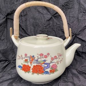 Vintage Asahi Cherry Blossom Birds Japanese Porcelain Teapot