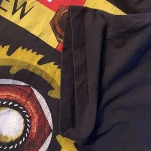 Worn, signs of wear, which include some cracking of the ink on the shirt along with some fading. All flaws are documented in the photos. Single stitched on the sleeves of the shirt. I love reasonable offers.