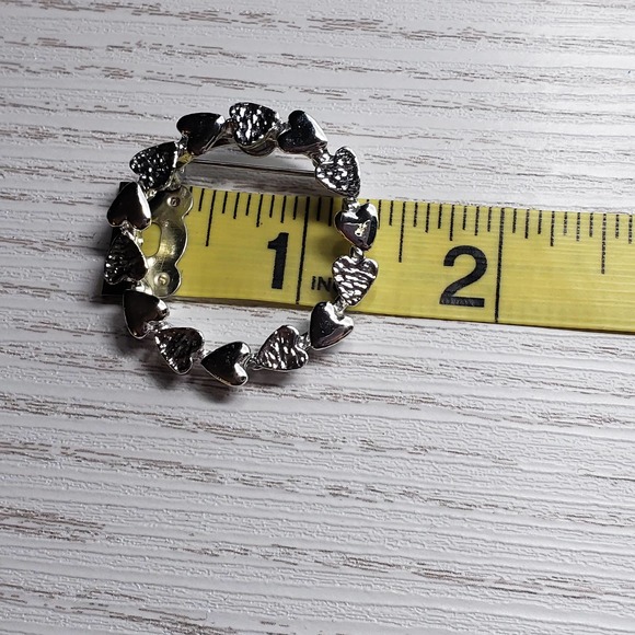 Gerrys silver tone heart wreath brooch pin, shiny textured hearts. Signed Costume Jewelry Love Valentine's Day Accessory Round Circle
