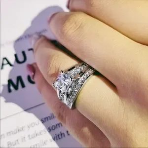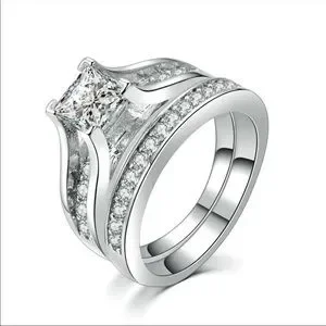 New Women’s 2pc Set 925 Silver Diamond Ring