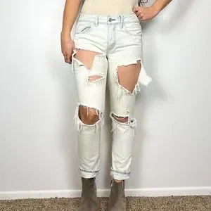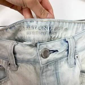 American Eagle Tomgirl Light Wash Distressed Ripped Straight Leg Jeans Size 4