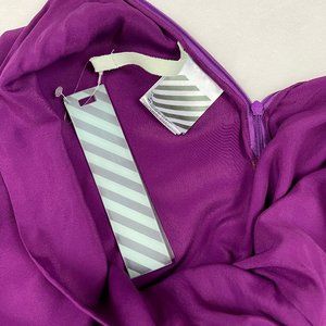 NWT Authentic Stunning! Sold everywhere! Made in Italy Off-White Virgil Abloh Asymmetric Crepe De Chine Dress Purple. Made in Italy size 44, US 8. Purple Off-White "Floral Print Here" Asymmetric silk-blend maxi dress with pleating throughout, bateau neck and concealed zip closure at back.pic w Green dress only for viewing 1 Chest 19m5", waist 17", short side length 36", long one 62"