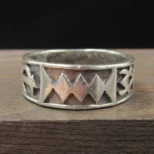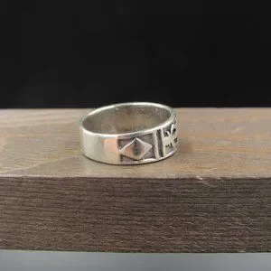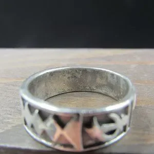 Size 8.25 Sterling Silver Worn Rustic Odd Shapes Band Ring Vintage