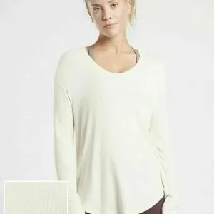 NWT ATHLETA Cloudlight Rib Stratus Lightweight Long Sleeve Top Ivory